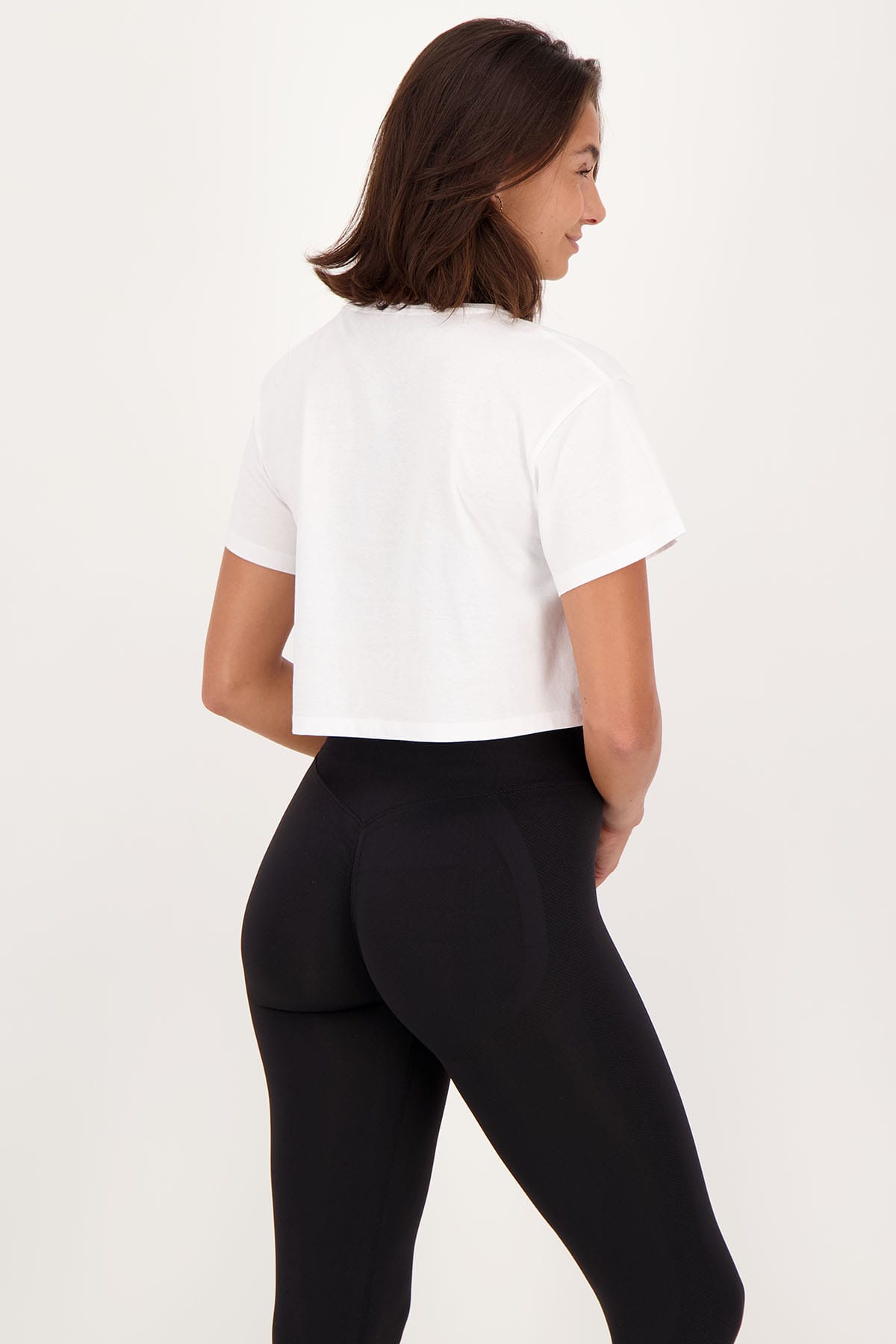 Ein weißes Crop-Top ist ideal, um es beim Training, zu Hause oder für einen Athleisure-Look zu kombinieren. Der kurze Schnitt ermöglicht eine einfache Bewegung, fühlt sich bequem an und hält Sie während des Trainings kühl. Erhältlich in verschiedenen coolen Farben.