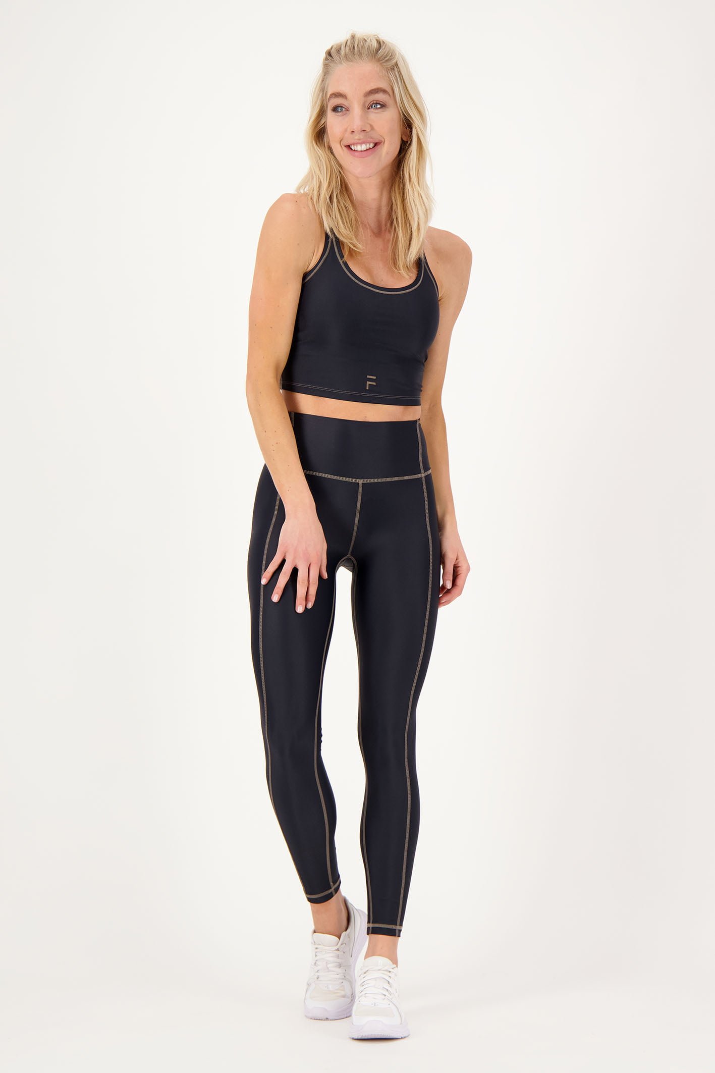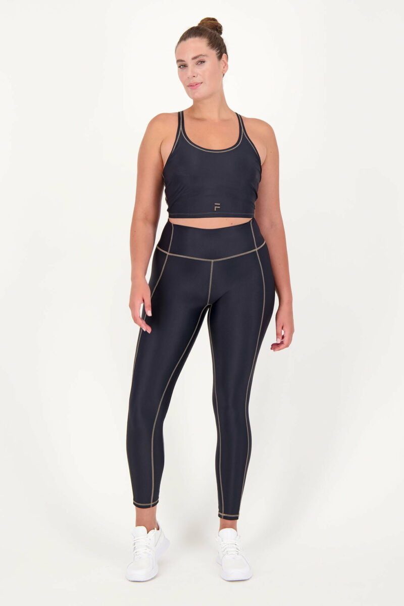 Glänzen Sie mit unserer einzigartigen und trendigen Kontrastlinie! Die speziell von FITT in Europa entworfene Linie besteht aus Leggings mit hoher Taille und passendem Oberteil, das in 4 Farben erhältlich ist. Dieses schöne Set hat kontrastierende taupefarbene Nähte und ist aus recycelten Materialien hergestellt. Das Oberteil ist mit herausnehmbaren Pads ausgestattet und kann daher auch ohne BH getragen werden. Für welches Kontrastmittel werden Sie sich entscheiden?