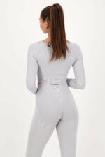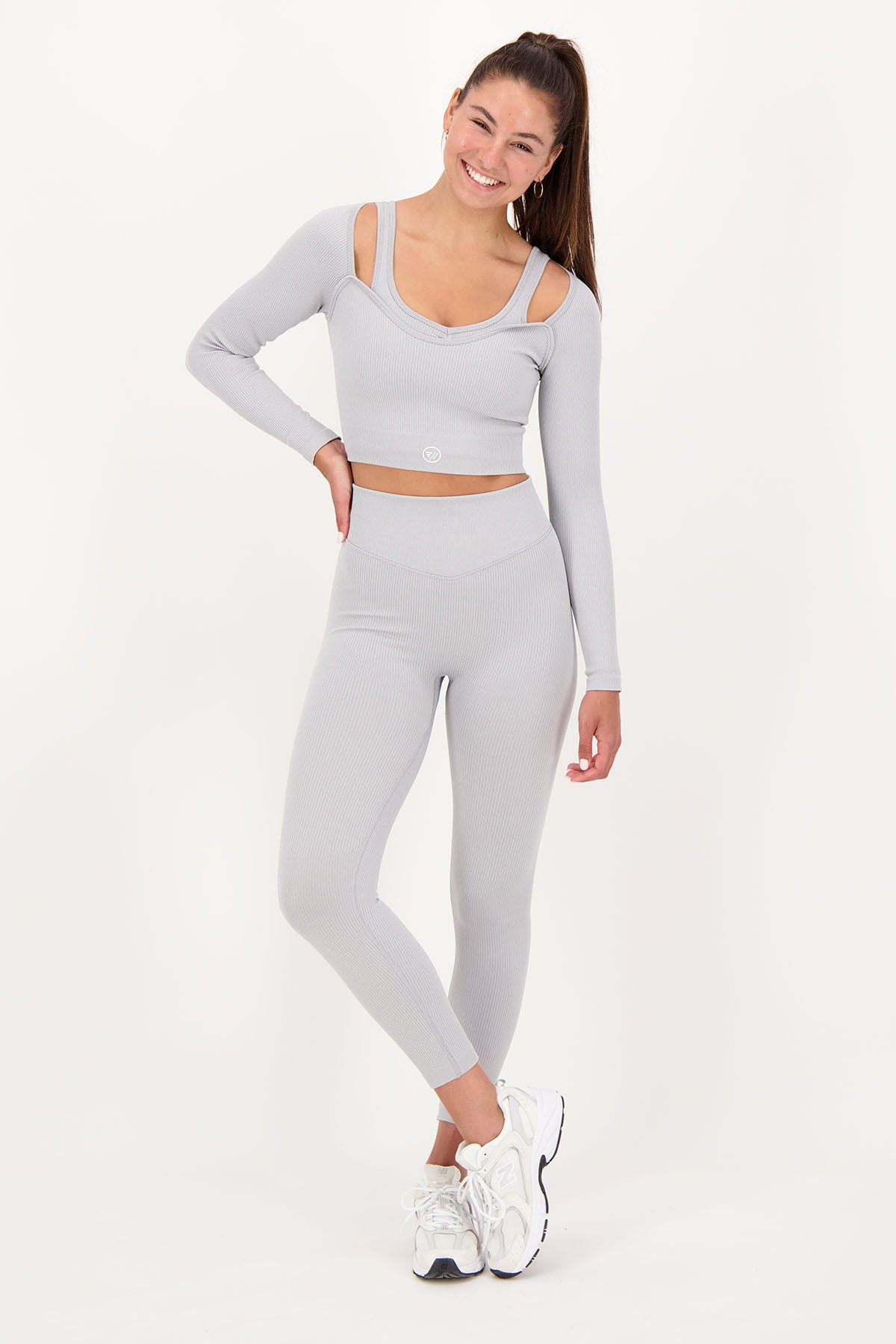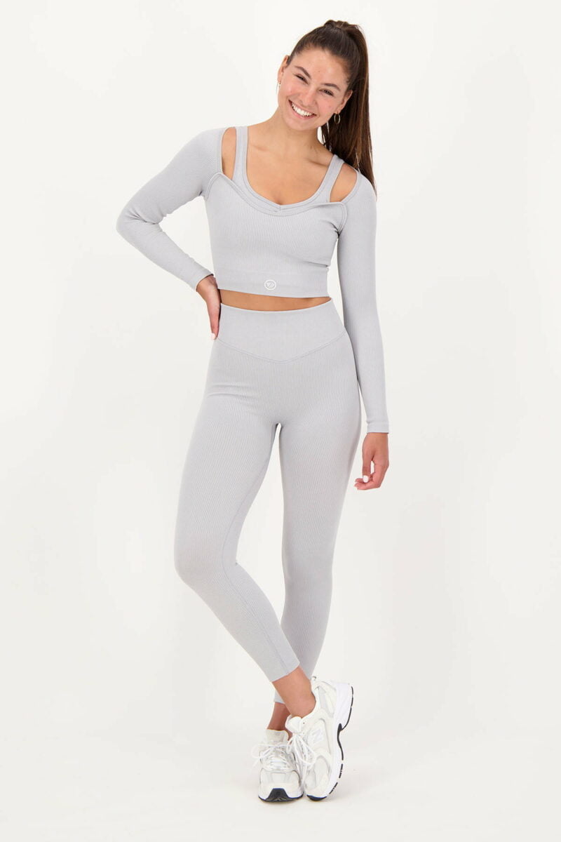 Rib fabric has a very good and strong quality. This makes the fabric extremely suitable for any workout. The fabric has a fine, warm look and also feels wonderfully soft. This longsleeve Crop top has a beautiful and feminine neckline and is great to combine with the matching bra and scrunch leggings. Time to shine✨
