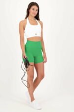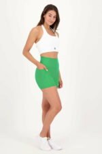 - A high waistband for comfortable support and accentuation at the top of the shorts.