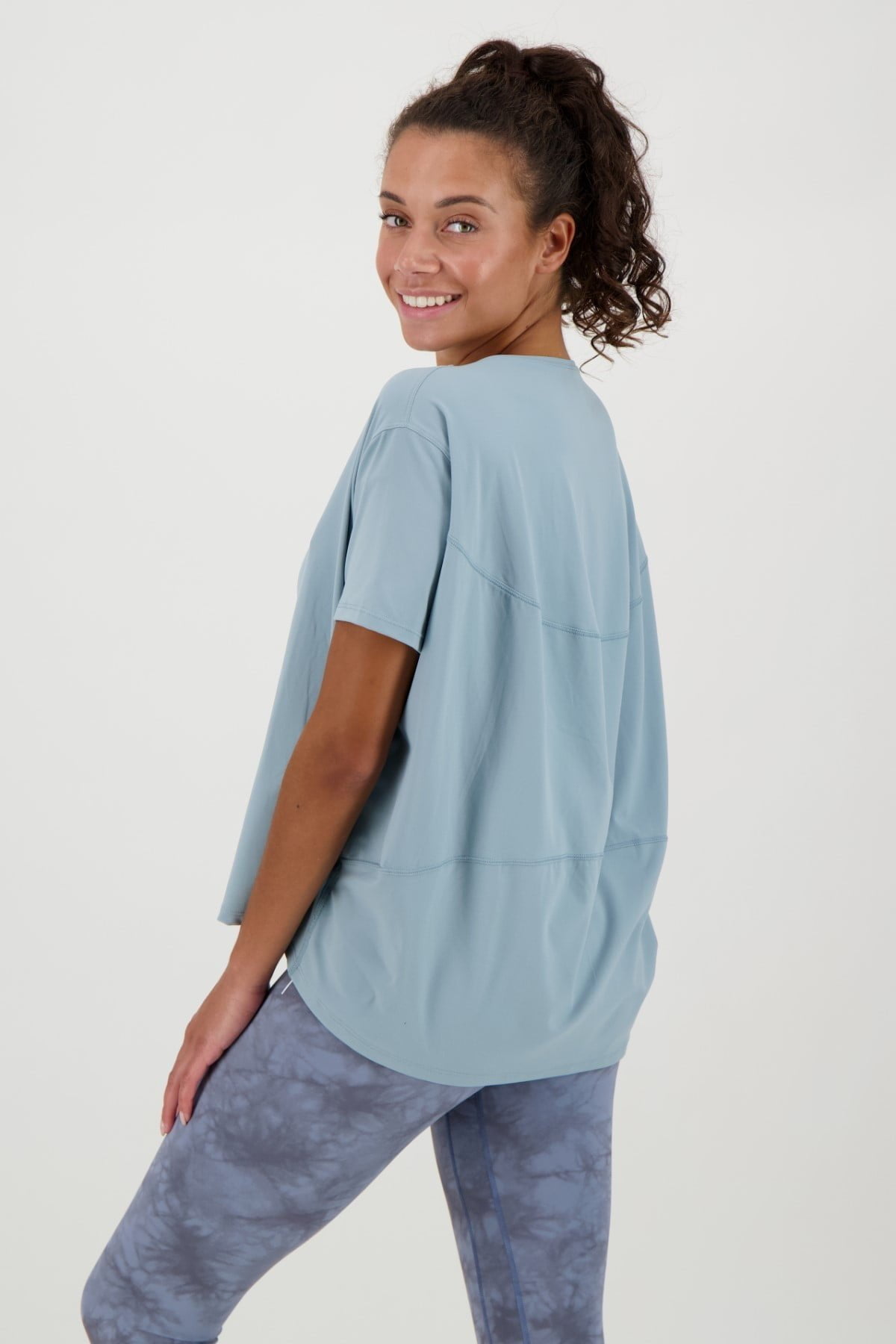 Un haut à manches courtes confortable et long. Le panneau arrière est extra long. La coupe ample et le tissu extensible et doux assurent un confort ultime.