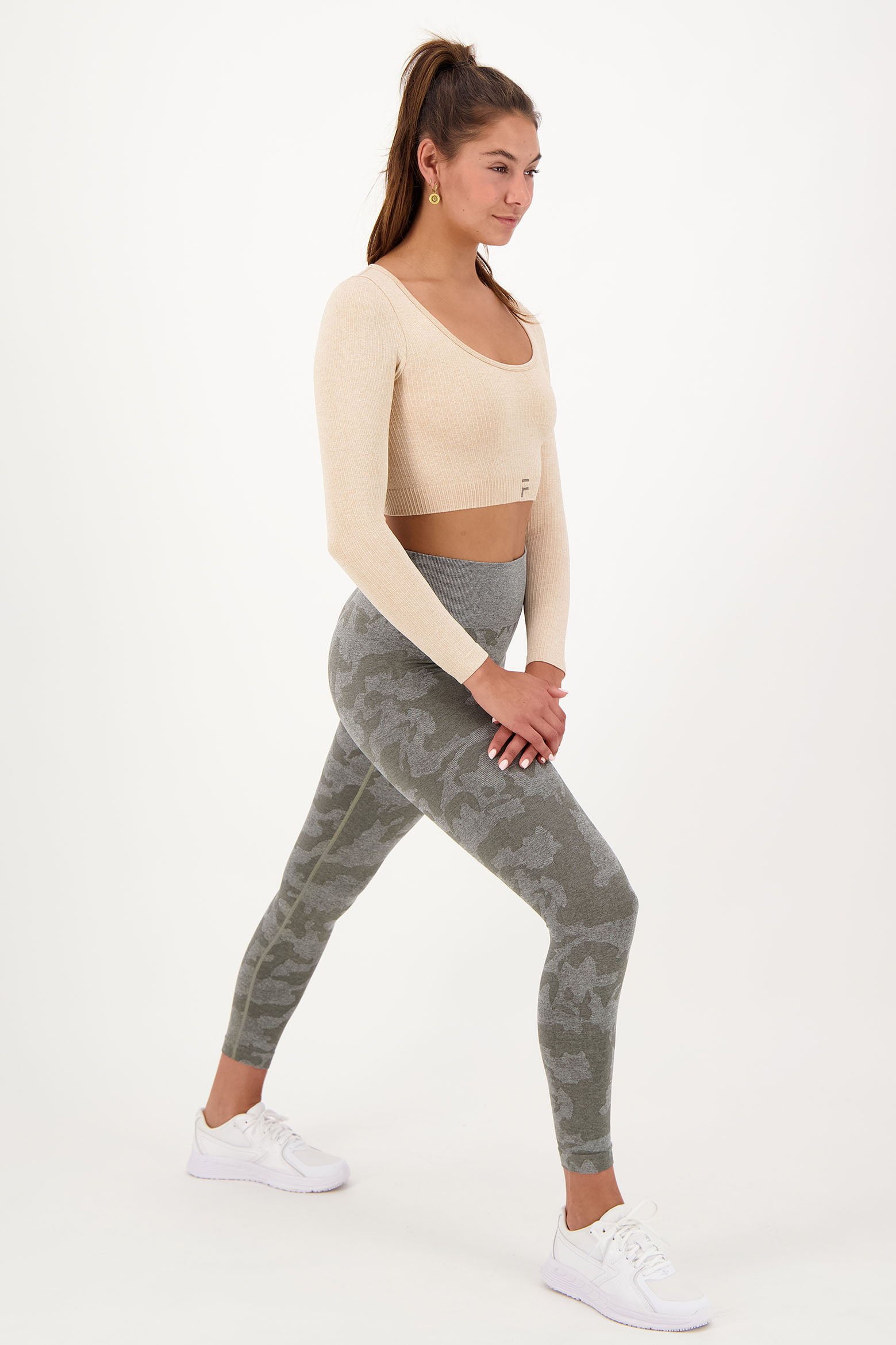 Opzoek naar een kleurrijke en stoere sportlegging? Dan is de camo seamless legging echt iets voor jou! De legging is gemaakt van een zacht en stretchy materiaal waardoor hij zal aanvoelen als een second skin. Door de geribbelde highwaist band zal hij elke pittige workout doorstaan. De legging is volledig squatproof en heeft een geborduurd FITT logo. Beschikbaar in meerdere trendy kleuren!