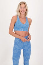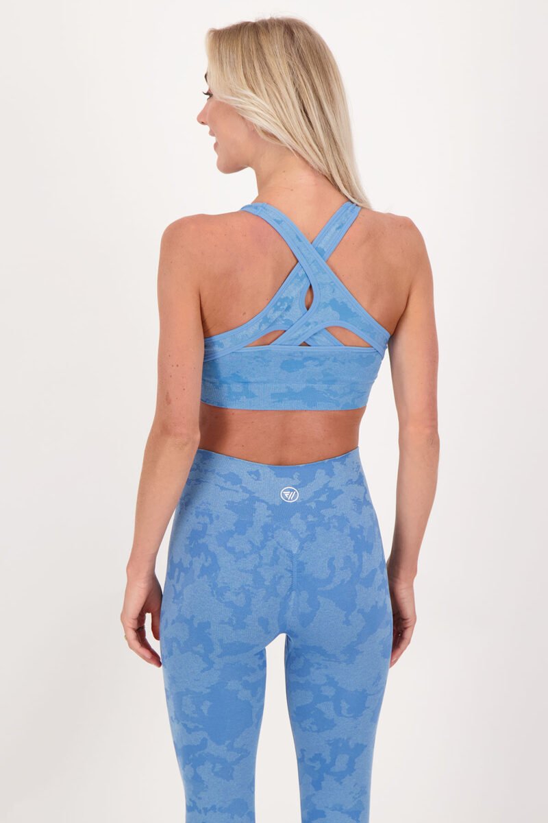 High impact sport BH met een all-over jacquard camouflageprint in verschillende toffe kleuren! Gekruisde banden en het overslag detail aan de voorzijde zorgen voor toffe details in deze BH. De stof is zweetafvoerend en dus ideaal voor elke workout.