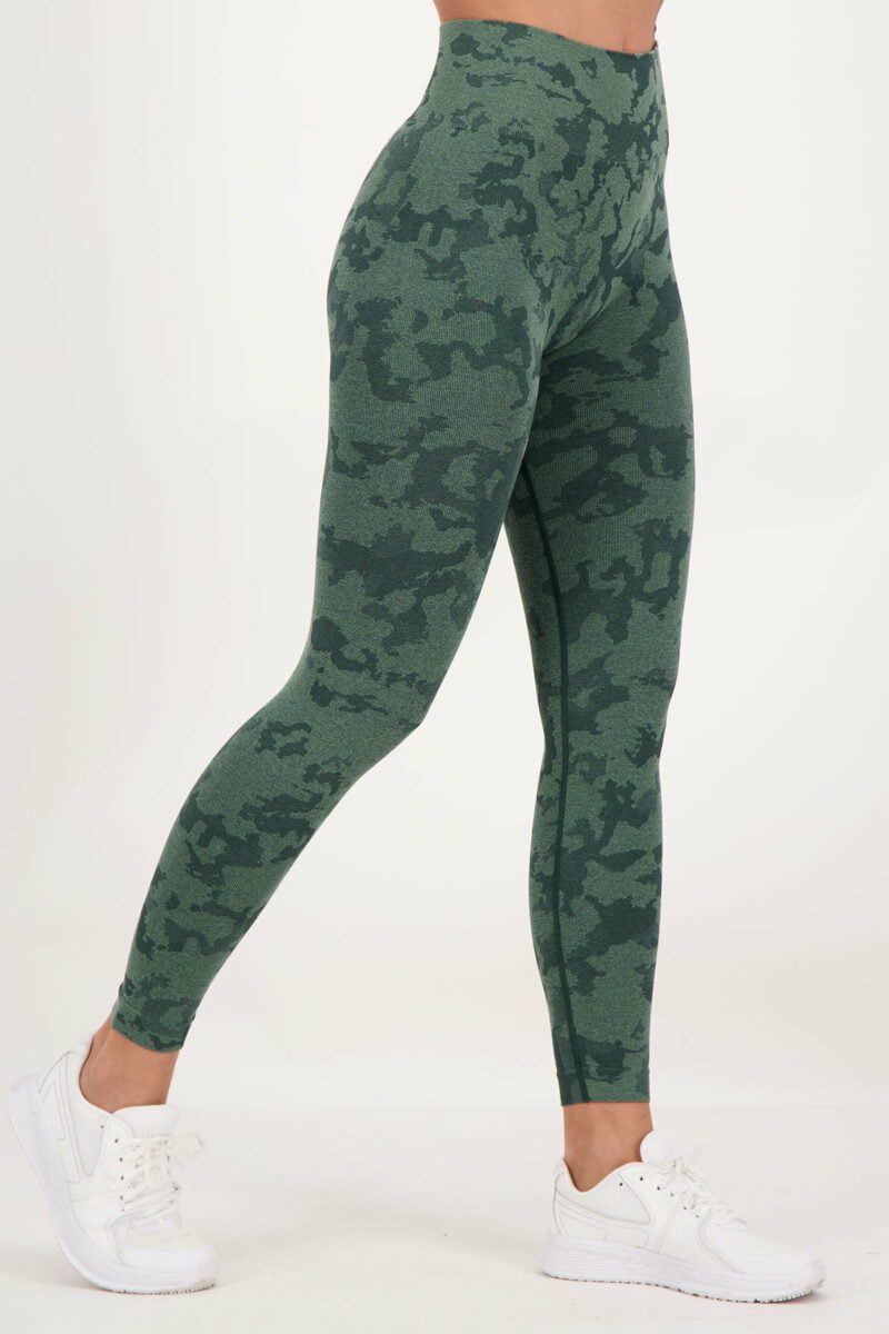 High waist leggings met een all-over jacquard camouflageprint in verschillende toffe kleuren! Met scrunch aan de achterzijde om jouw contouren te laten shinen. De stof is zweetafvoerend en dus ideaal voor elke workout.