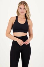 Dé ultieme basic zwarte sport BH. Deze naadloze sportbeha is voorzien van uitneembare voorgevormde padding en is afgewerkt met vorm verbeterende effecten die het mogelijk maken om in comfort en stijl te presteren tijdens elke workout!