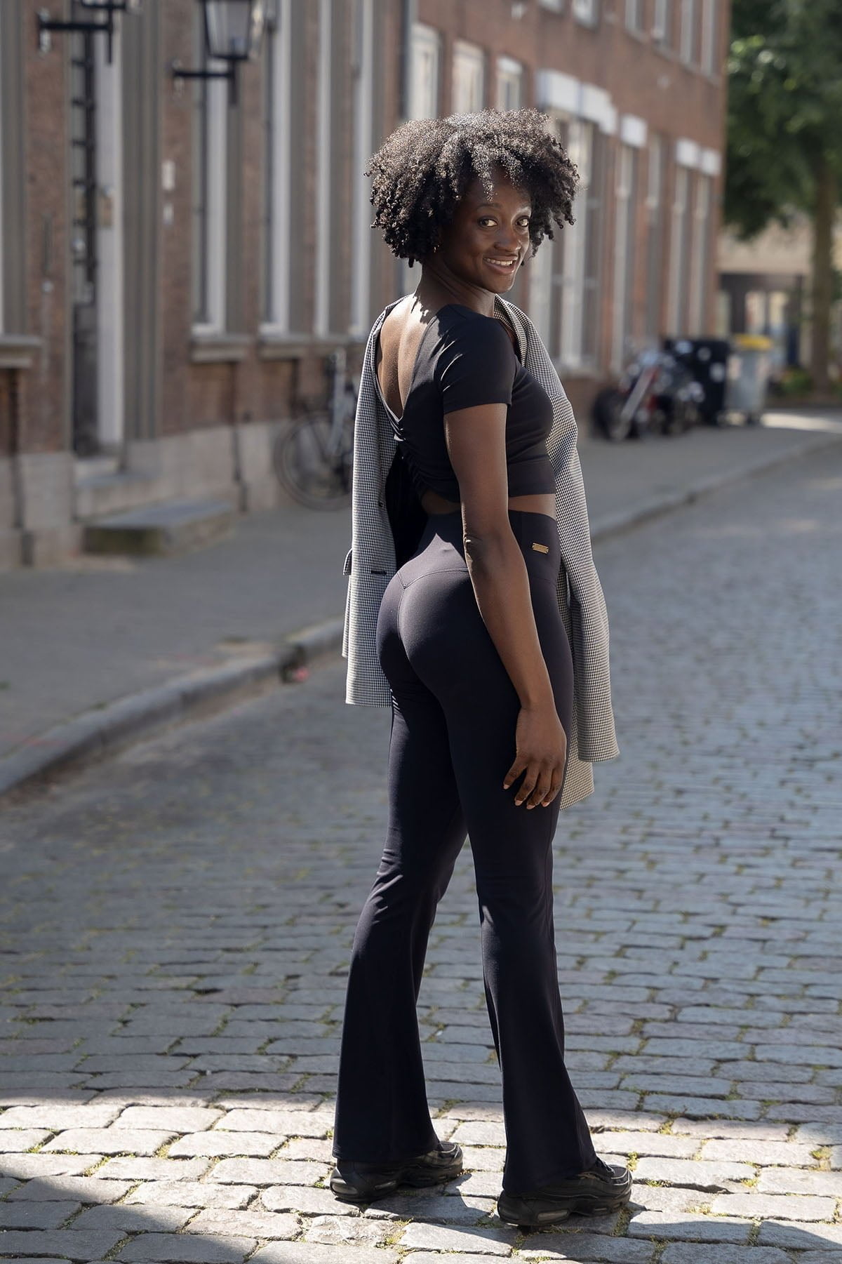 Ontdek onze flared legging, de perfecte combinatie van stijl en comfort voor zowel je dagelijkse outfit als je sportieve look. Deze legging is gemaakt van stretchy en zachte stof, waardoor hij moeiteloos met je meebeweegt en comfort biedt. De hoge tailleband zorgt voor een mooie pasvorm en zakt niet af, inzetbaar voor al jouw activiteiten dus!