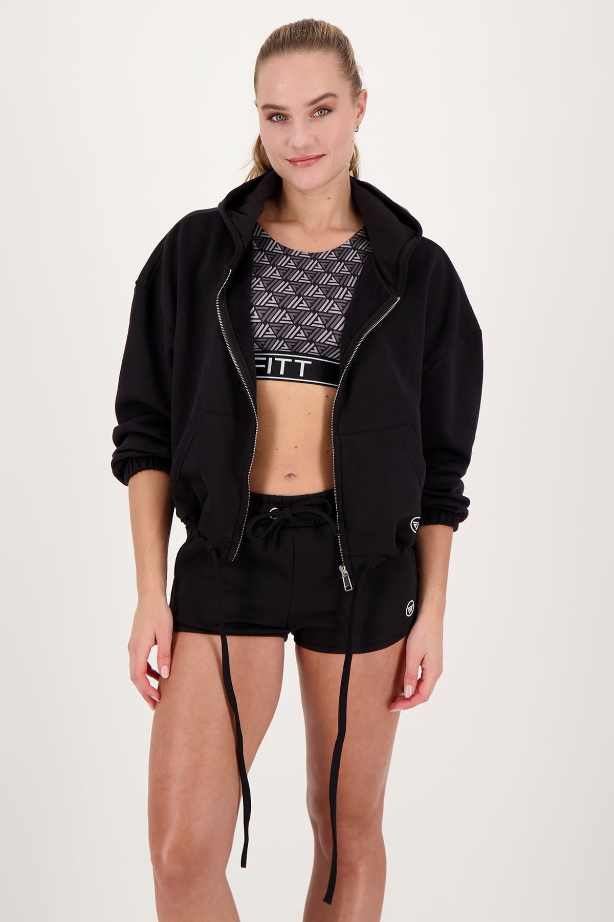 Deze oversized crop sweater vest is hét essentiële athleisure kledingstuk. Volg de athleisure trend waarbij het toegestaan is om sportkleding en loungewear op straat te dragen. Voel je heerlijk comfi na je workout of in je vrije tijd in deze stoere hoody. Warmte wordt vastgehouden en het gevoel van comfort door de lichtgewicht stof vormen samen een flatteuze look! Het vest is voorzien van rijgkoorden aan de onderzijde waarmee je het vest kunt croppen. Ideaal om je spieren warm te houden onderweg naar de gym of om lekker in te loungen samen met de Lounge Jogg Shorts.