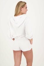 Deze oversized crop sweater vest is hét essentiële athleisure kledingstuk. Volg de athleisure trend waarbij het toegestaan is om sportkleding en loungewear op straat te dragen. Voel je heerlijk comfi na je workout of in je vrije tijd in deze stoere hoody. Warmte wordt vastgehouden en het gevoel van comfort door de lichtgewicht stof vormen samen een flatteuze look! Het vest is voorzien van rijgkoorden aan de onderzijde waarmee je het vest kunt croppen. Ideaal om je spieren warm te houden onderweg naar de gym of om lekker in te loungen samen met de Lounge Jogg Shorts.