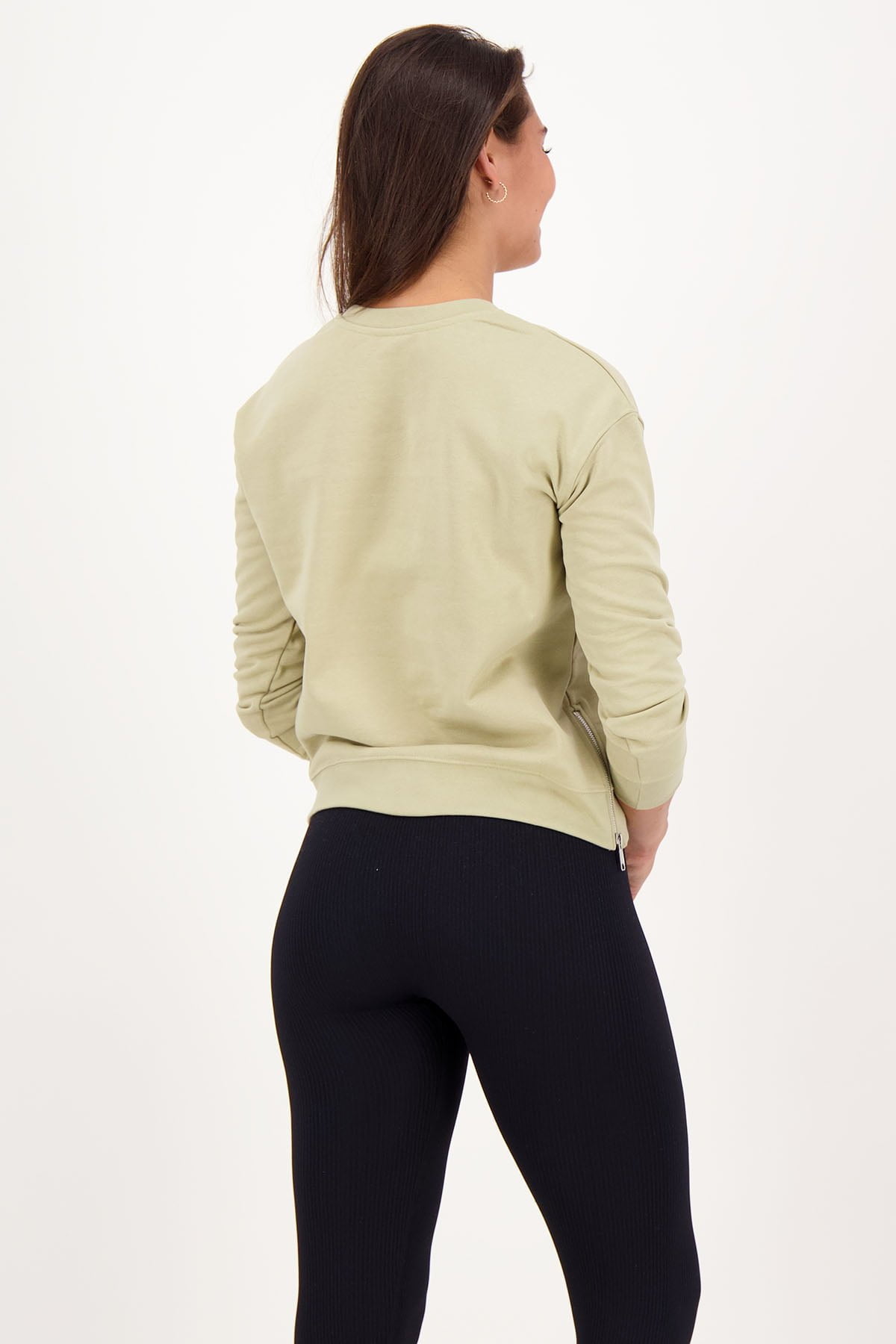 Deze sweater is een must have om jou warm te houden voor, tijdens of na jouw work-out. Samen met de 2 ritsen aan de zijkanten die open en dicht kunnen en de fleece voering aan de binnenkant is deze sweater ideaal voor de koudere dagen, of je er nu in gaat loungen of in gaat zweten! De sweater is gemakkelijk over je outfit heen te trekken. Ben je op zoek naar ultiem comfort? Bestel dan ook onze FITT jogger erbij!