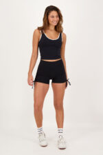 De Ruched shorts zijn een combinatie van comfort, stijl en shaping in één. De verstelbare zijkanten met subtiele plooien laten je zelf bepalen hoe je de short draagt: strak en kort of iets langer en relaxed. De high-waist fit accentueert je taille en blijft perfect zitten tijdens elke beweging. De zachte, stretchy stof van nylon en elastaan voelt aan als een tweede huid en beweegt moeiteloos met je mee. Ideaal voor workouts, yoga of danslessen.