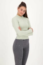 Deze sportieve top met lange mouwen en ¼ ritssluiting bij de hals is geschikt voor een goede harlooptraining of andere buitensporten. Bij de rits zit een stoffen beschermkapje waardoor de rits niet schuurt in de hals/nek. De top is voorzien van lange mouwen met duimopeningen en heeft een mooie pasvorm dankzij de mooie vrouwelijke belijningen aan de voorzijde.